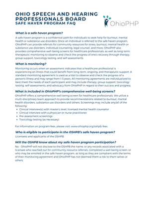 Below you will find social media posts, program brochures and one-pagers, and other key marketing pieces to share about the OSHPB safe haven program.